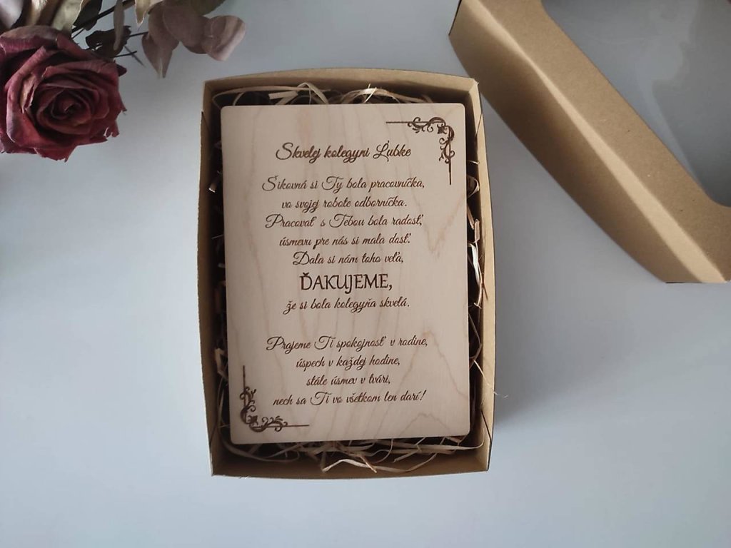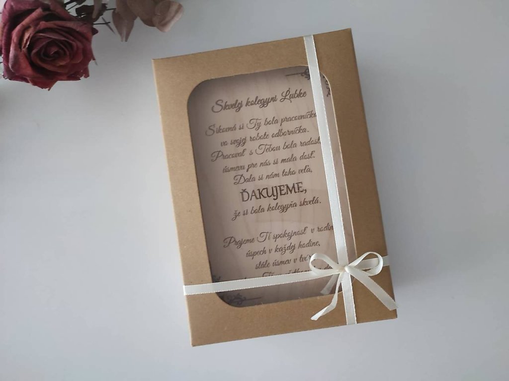 Za úsmev a pomoc, za všetku prácu a úsilie... Milý darček vo forme poďakovania pre skvelú kolegyňu (skvelého kolegu) pri jej odchode z práce, s NAŠIM ORIGINÁLNYM TEXTOM :)