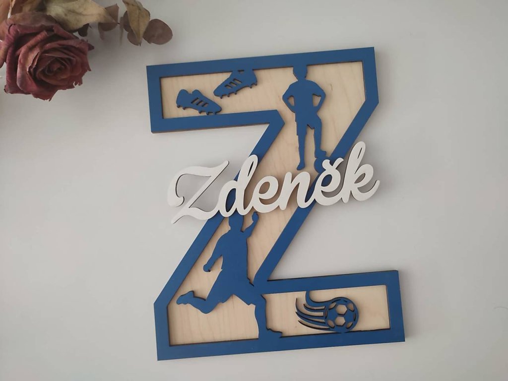 Písmenko sa skladá z troch vrstiev - plná podkladová vrstva, na ktorej je nalepená vyrezávaná vrstva s obľúbeným motívom, na ktorej je nalepené meno Vášho dieťatka.