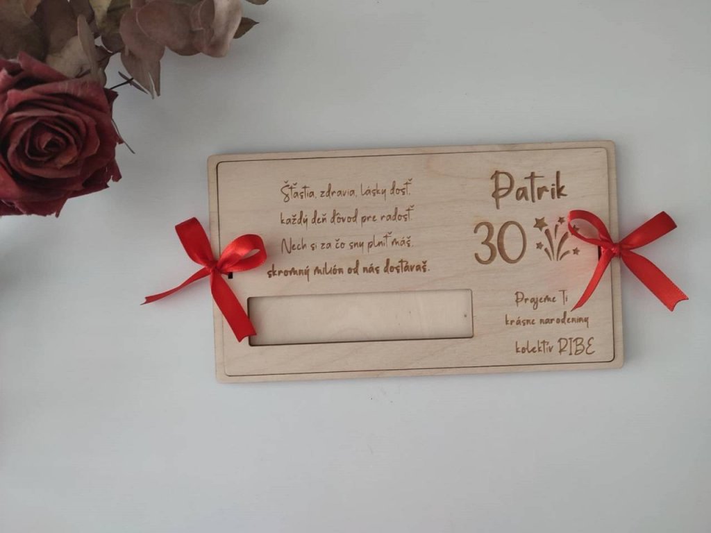Drevená obálka na peniaze k jubileu/narodeninám - Skromný prvý milión