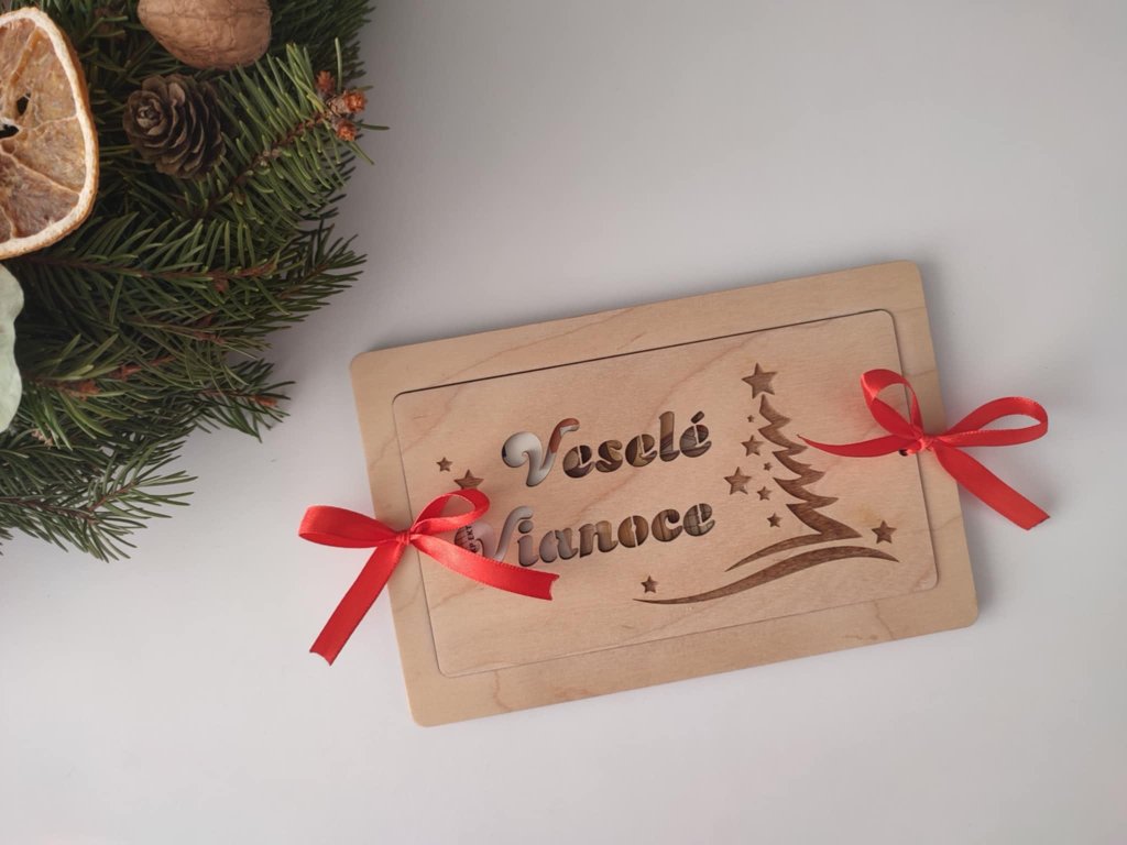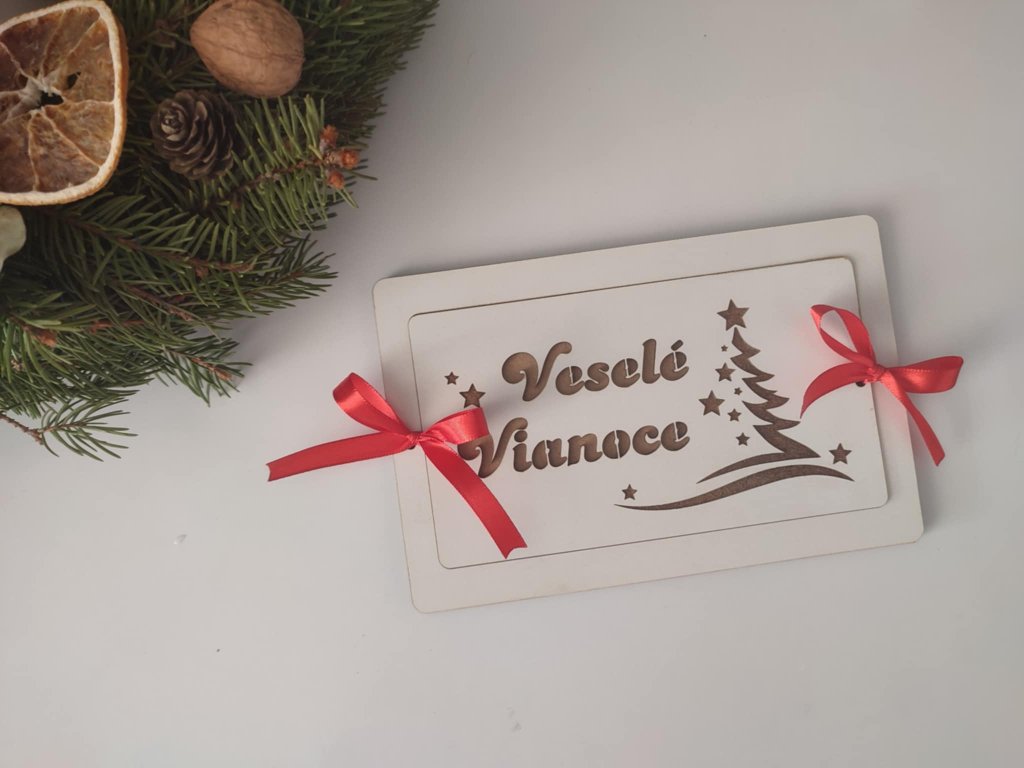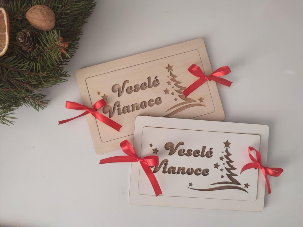Drevená obálka na peniaze s vianočným motívom a vyrezávaným textom je jednoduché a vtipné riešenie ako si nelámať hlavu nad darčekom a venovať to najužitočnejšie – peniaze. Obálky sú dostupné v prírodnom alebo bielom prevedení.