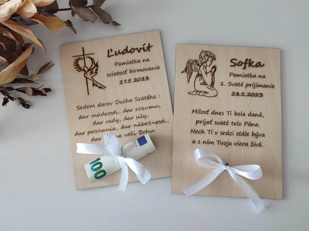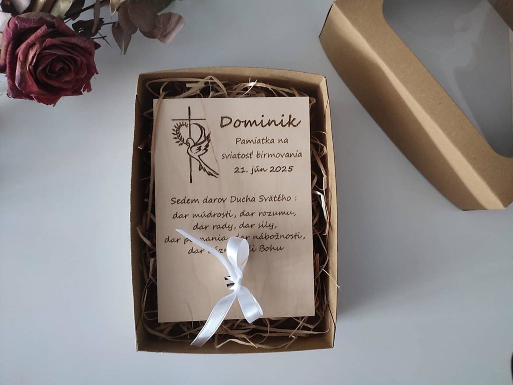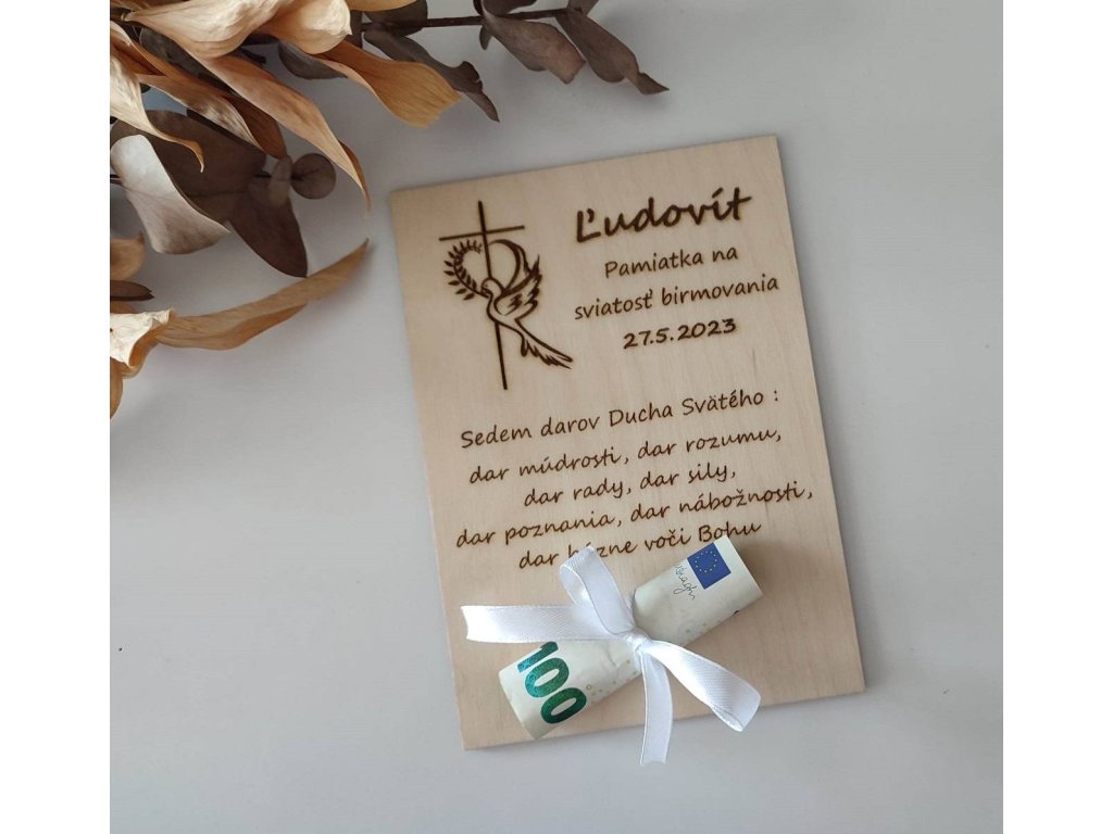 Drevená tabuľka na darovanie peňazí - Birmovka