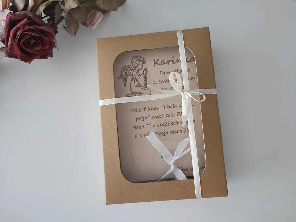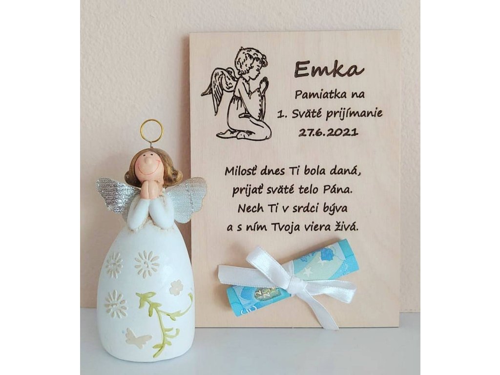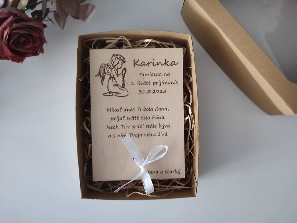 Drevená tabuľka na darovanie peňazí - Prvé sväté prijímanie