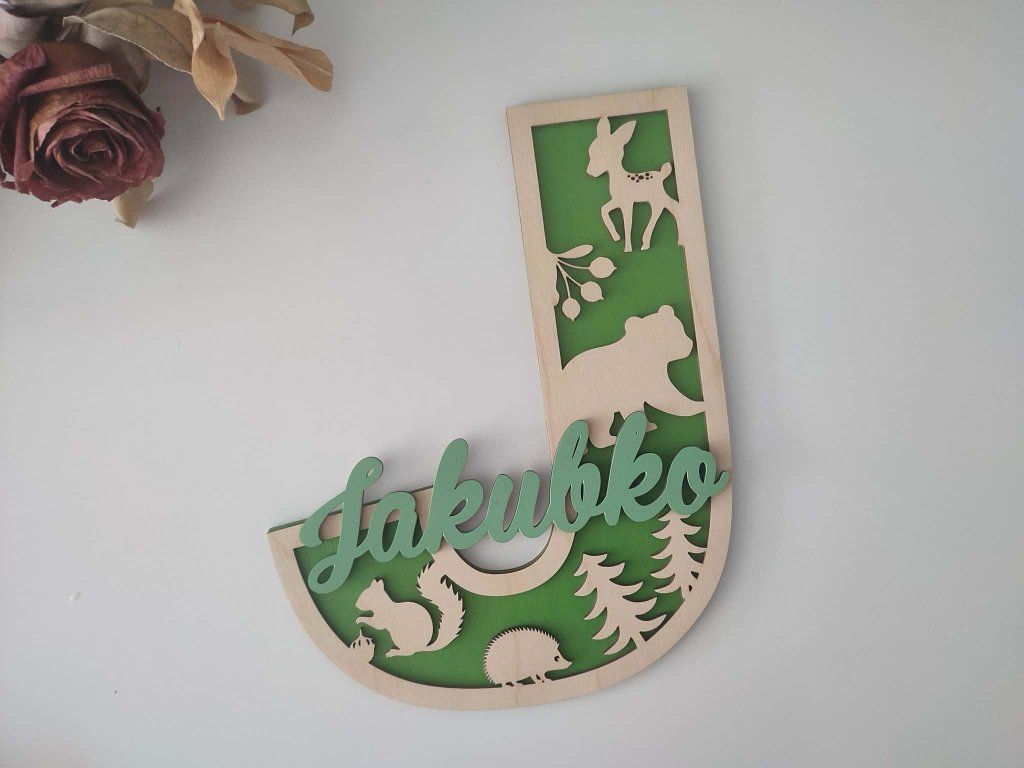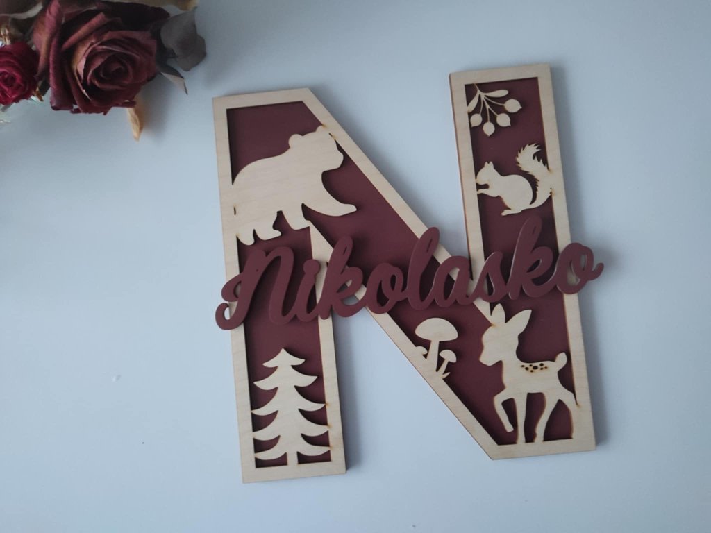 Drevené písmenko s menom - les