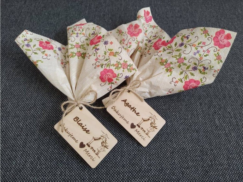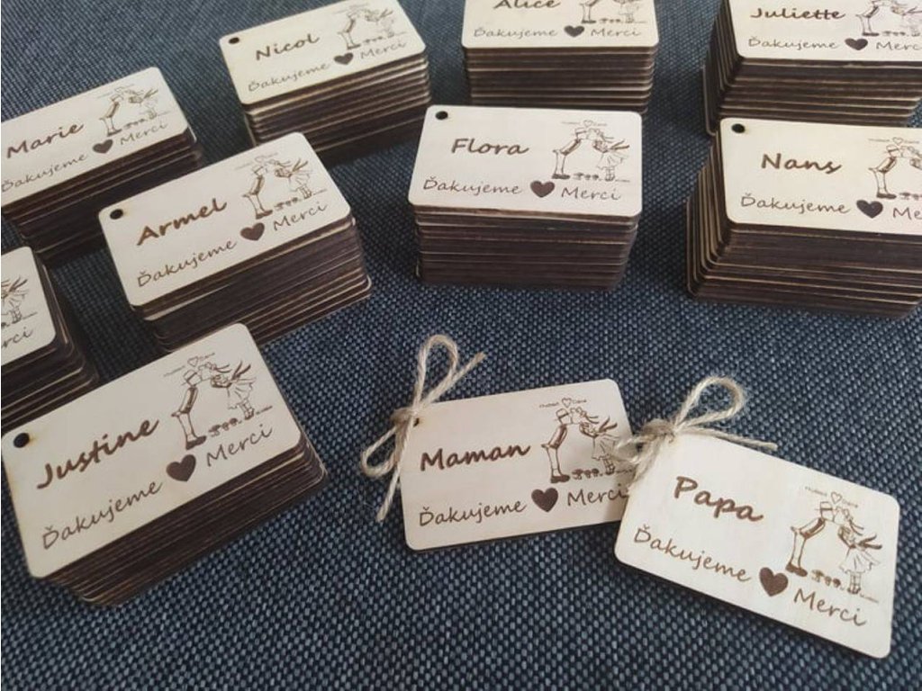 Netradičné drevené menovky s gravírovaným menom dokonale podčiarknu čaro každej svadby v prírodnom a ľudovom duchu.