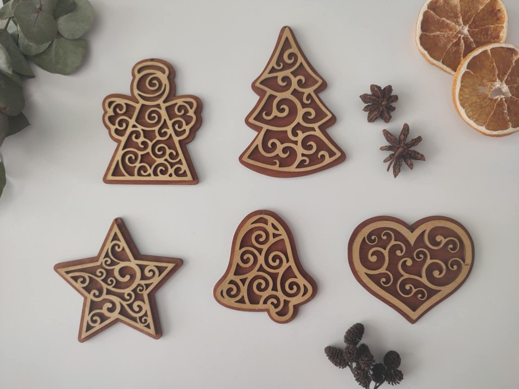 Doprajte svojej vianočnej výzdobe jedinečný šmrnc s našimi drevenými ozdobami s jemným ornamentom. Tieto ozdoby prinesú do vášho domova teplo, vôňu Vianoc a kúsok tradičného remesla. Krásne vyniknú na stromčeku, v adventnom venci či ako malá pozornosť pre Vašich priateľov a blízkych.