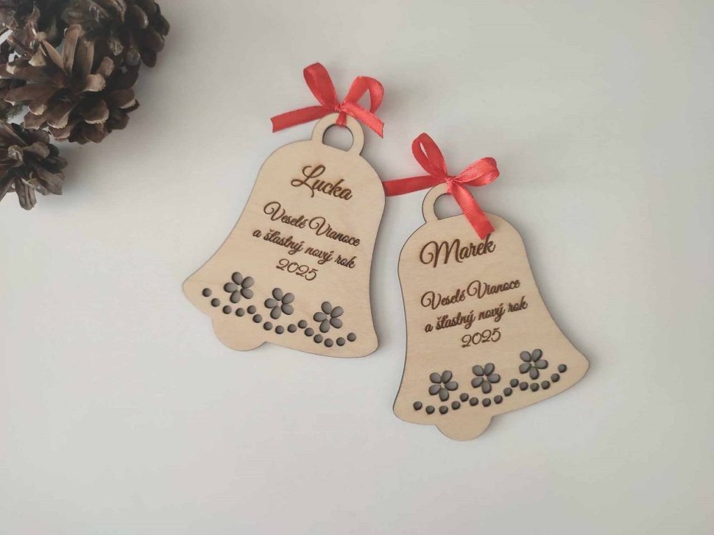 Drevené vianočné ozdoby - Zvonček s menom