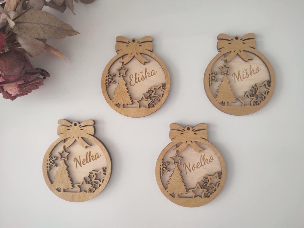 Drevené vianočné ozdoby - dvojvrstvová guľa s menom