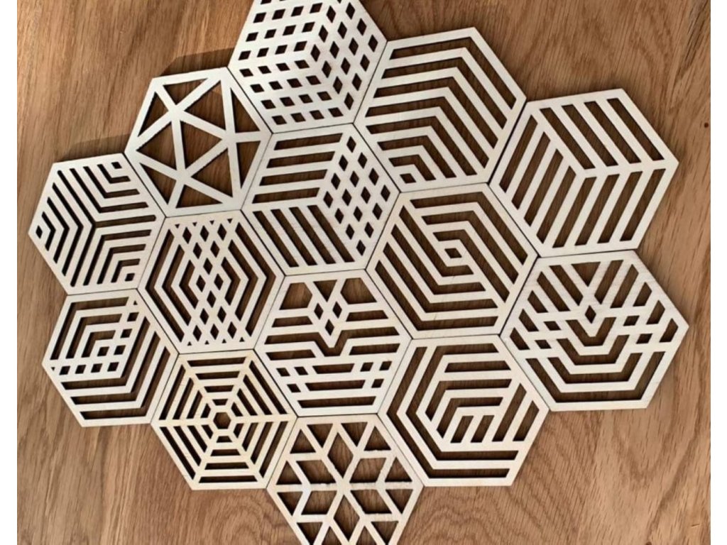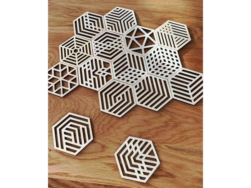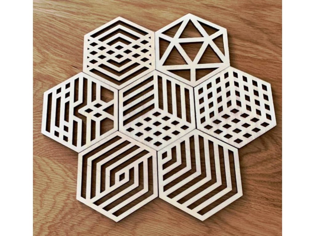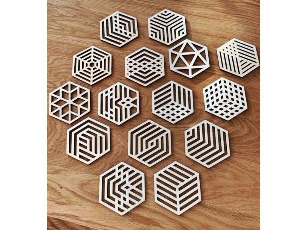 Originálne drevené podložky pod šálku/pohár - hexagon