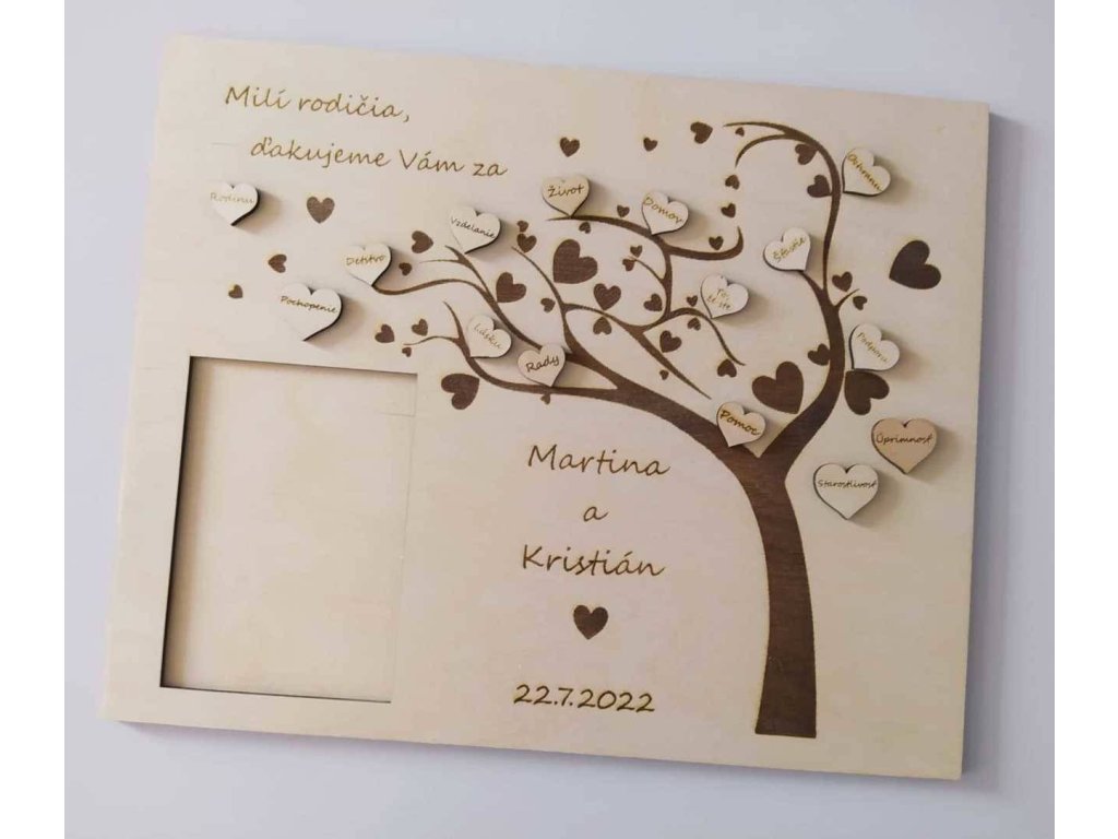 Ukážte svojim rodičom ako veľmi si vážite čo všetko pre Vás urobili a vyjadrite im vďaku týmto originálnym obrazom, ktorý im darujete pri odobierke alebo pri svadobnej hostine.