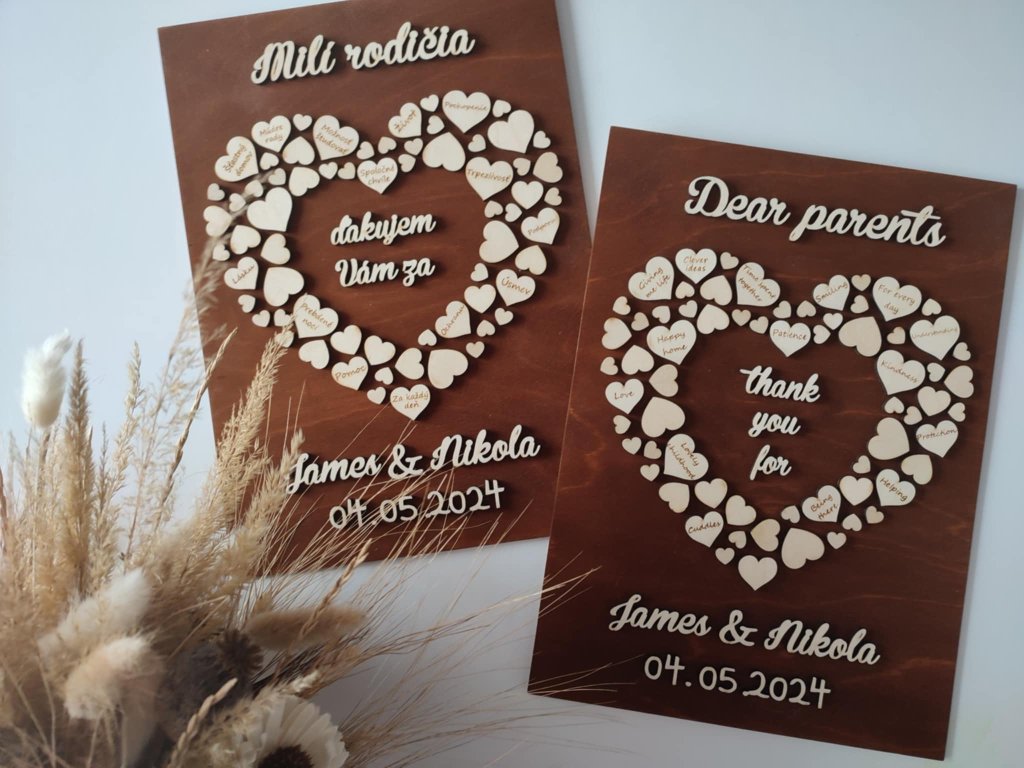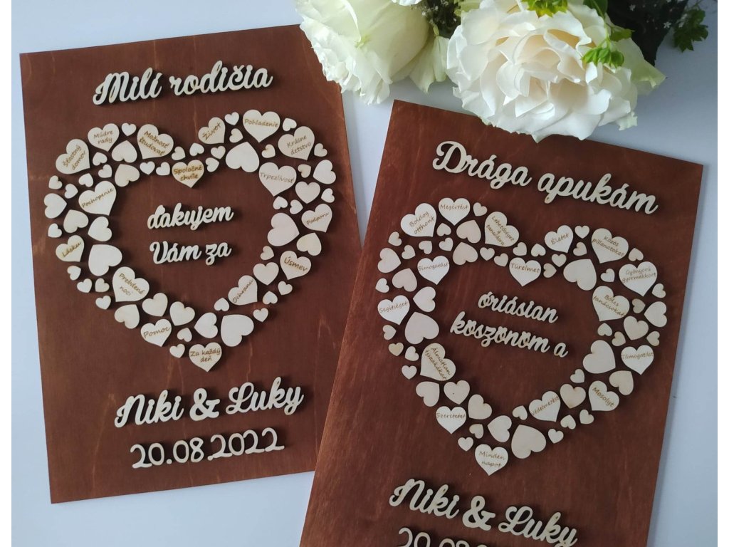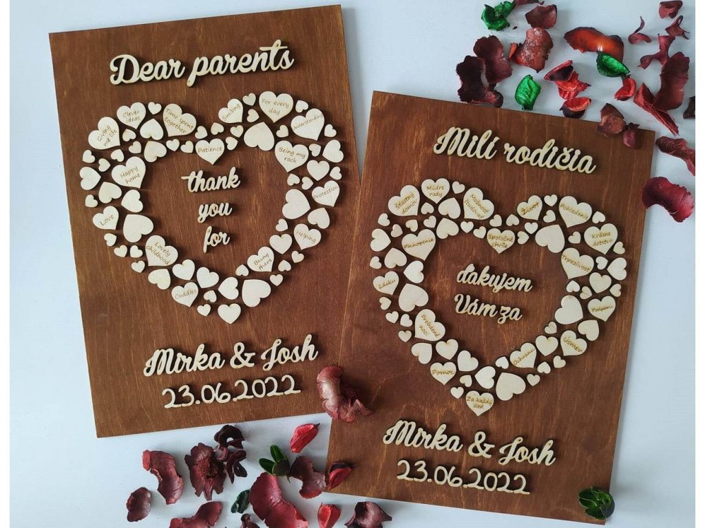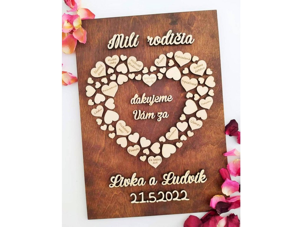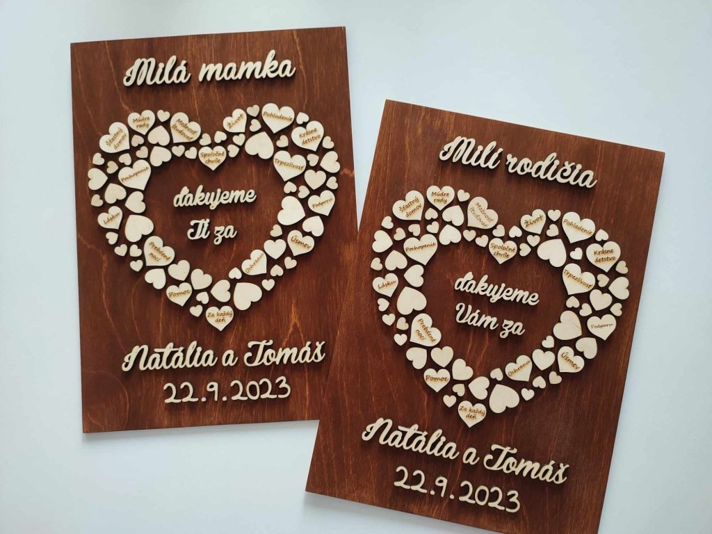 Poďakujete im za ich lásku, starostlivosť a rady pomocou nalepených srdiečok. V prípade záujmu je možné na srdiečka gravírovať slová podľa Vášho želania.