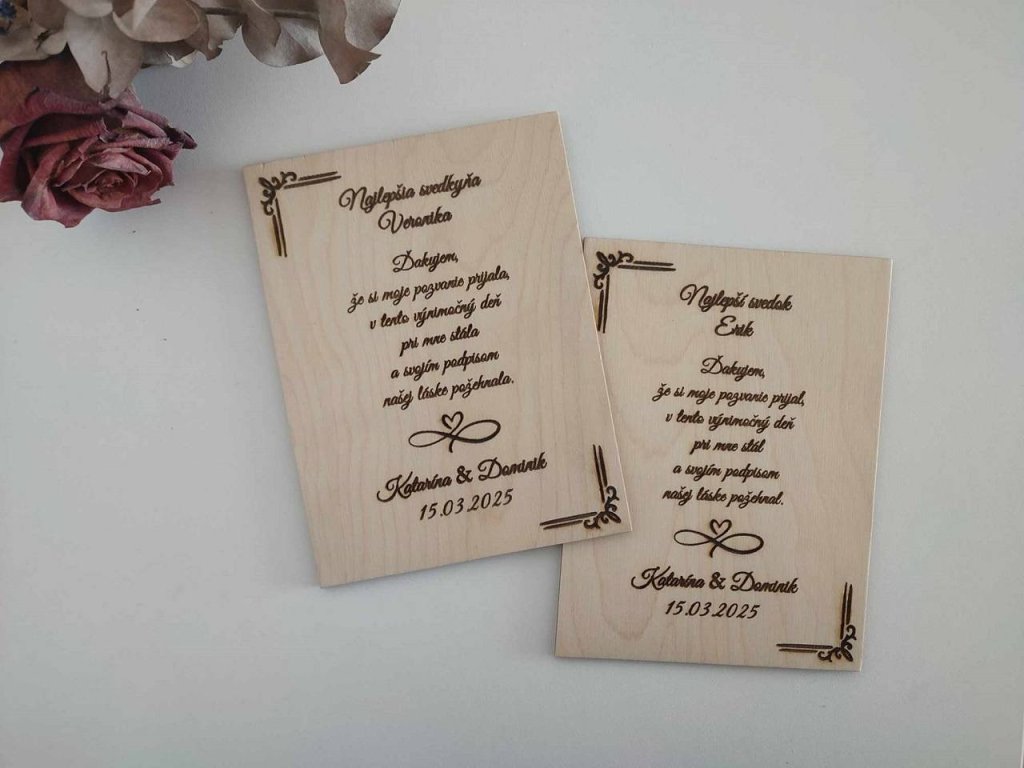 Krásny darček pre svedka ako poďakovanie za jeho priateľstvo a pomoc. S menami novomanželov a dátumom svadby, ako pekná spomienka na tento výnimočný deň. Aj vo verzii Najlepšia svedkyňa.