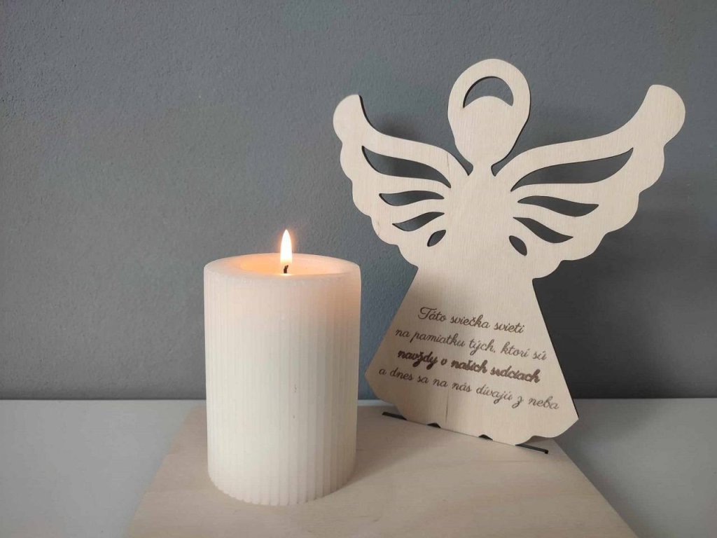 Spomienkový stojan s anjelom na sviečku, ktorá svieti na pamiatku tých, ktorí sú navždy vo Vašich srdciach a dívajú sa na Vás z neba.